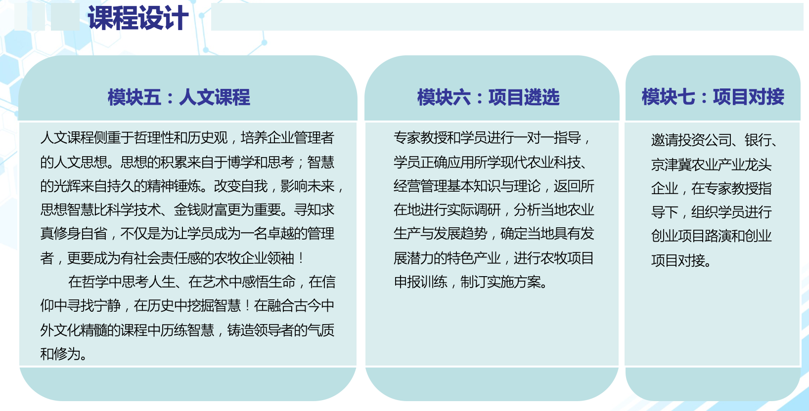 人文藝術(shù)課堂、時(shí)政講壇、農(nóng)牧項(xiàng)目申報(bào)訓(xùn)練、制訂實(shí)施方案等。